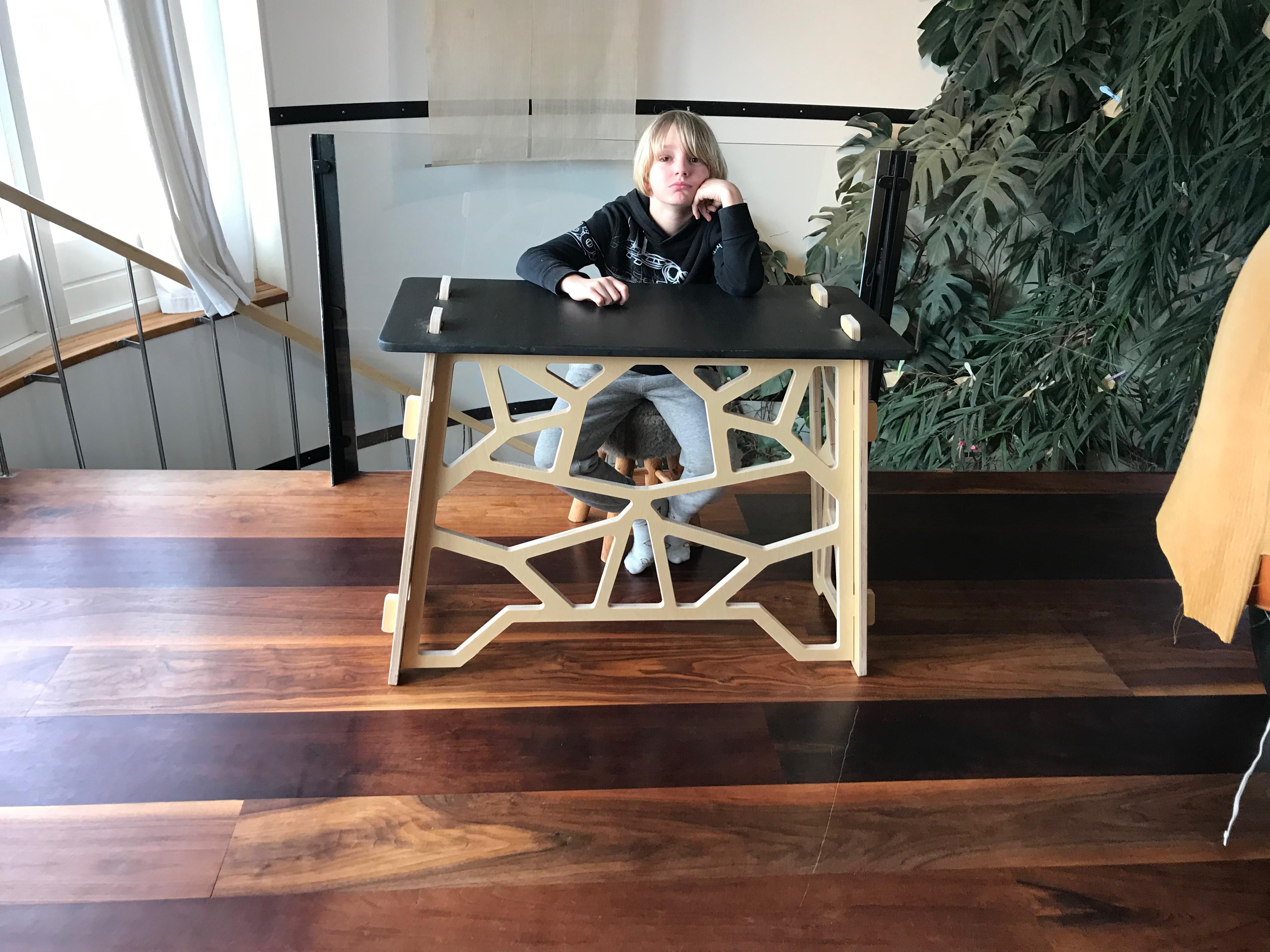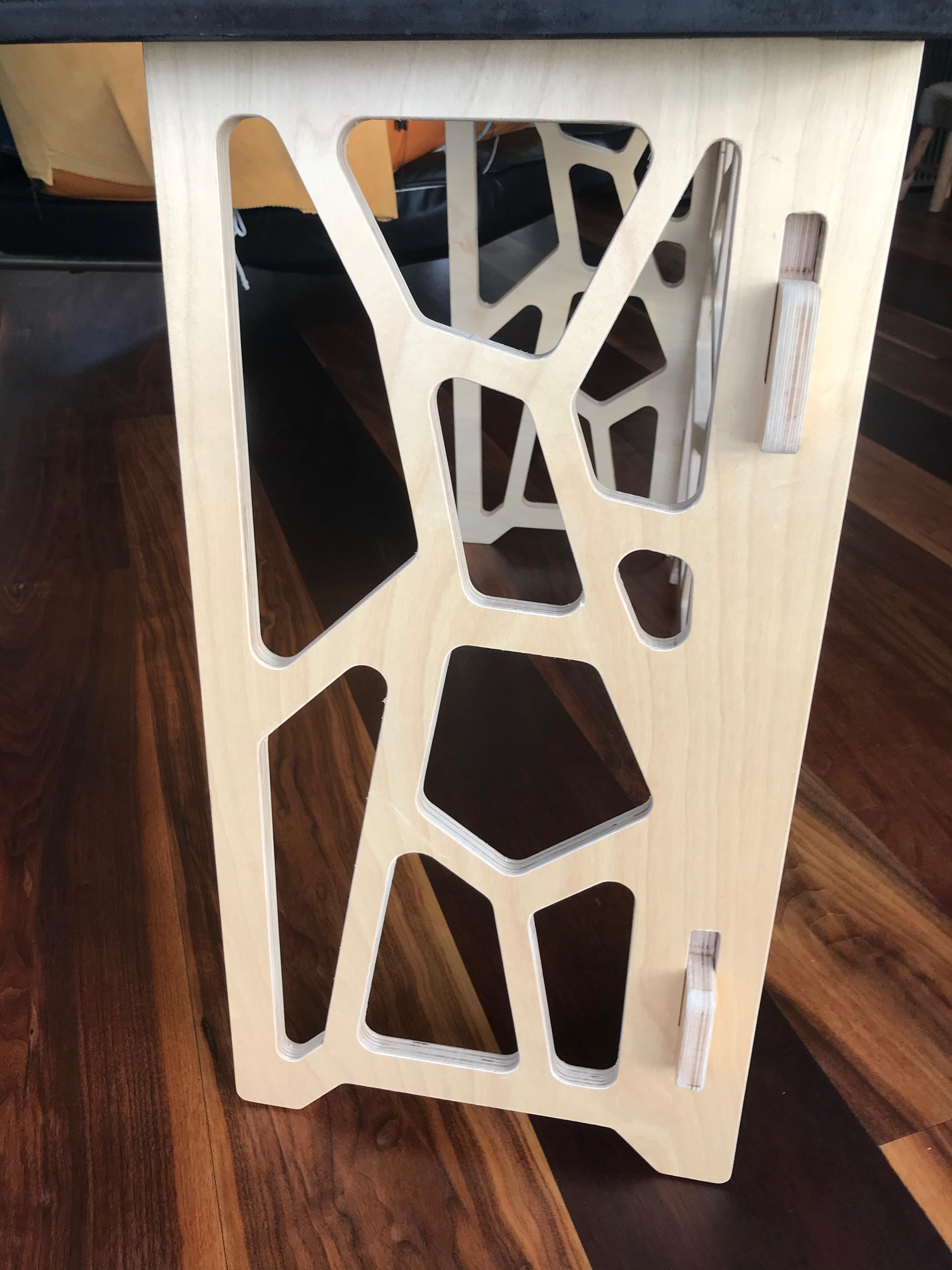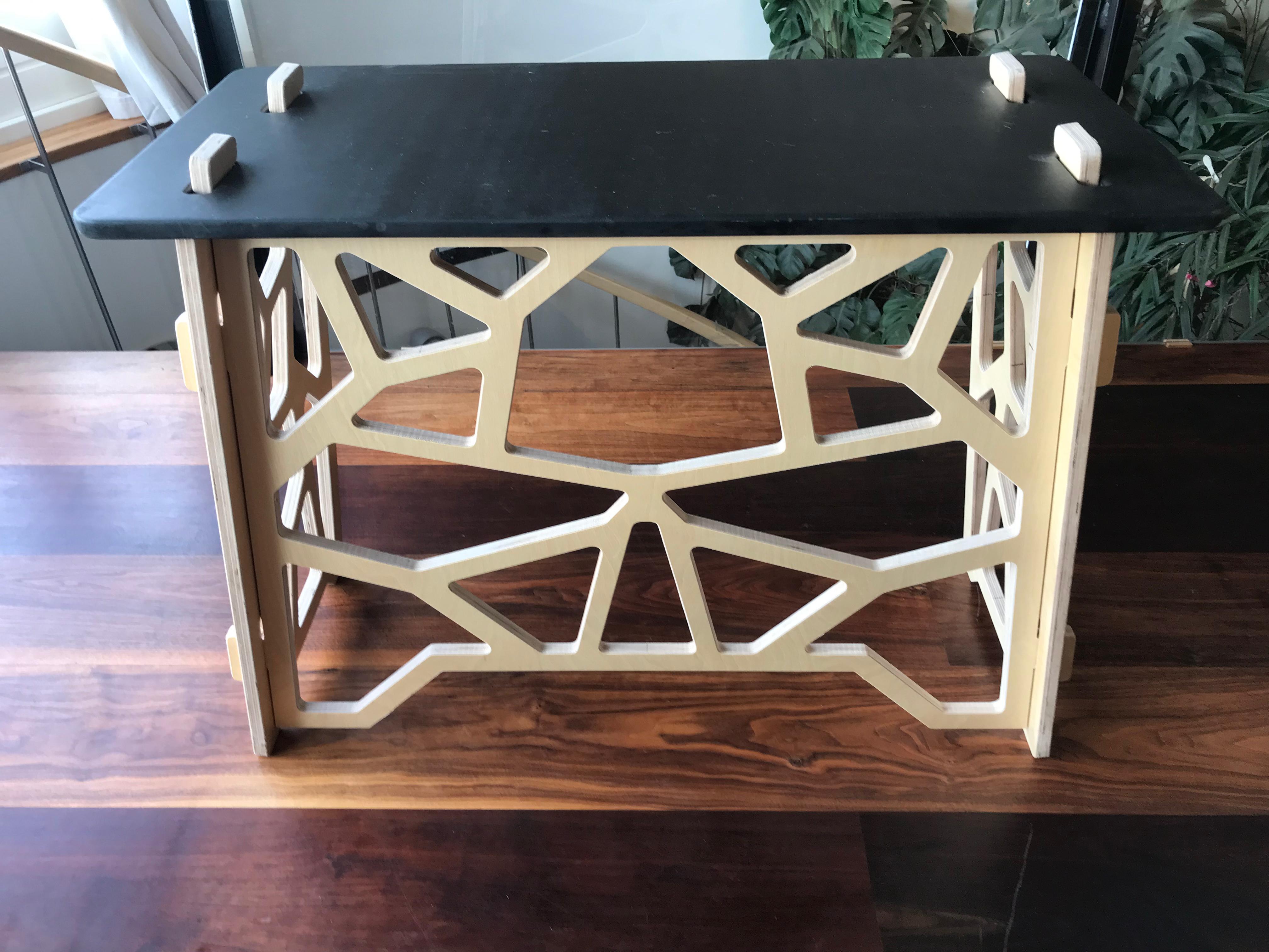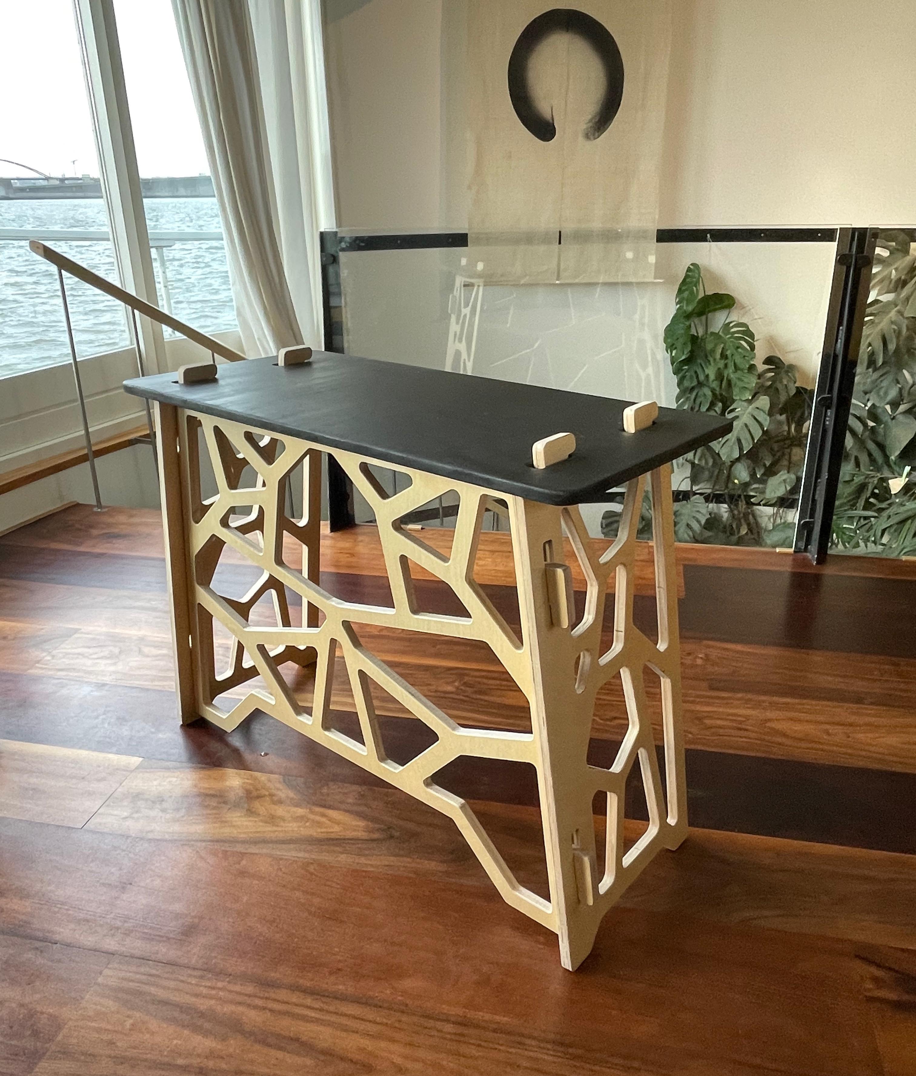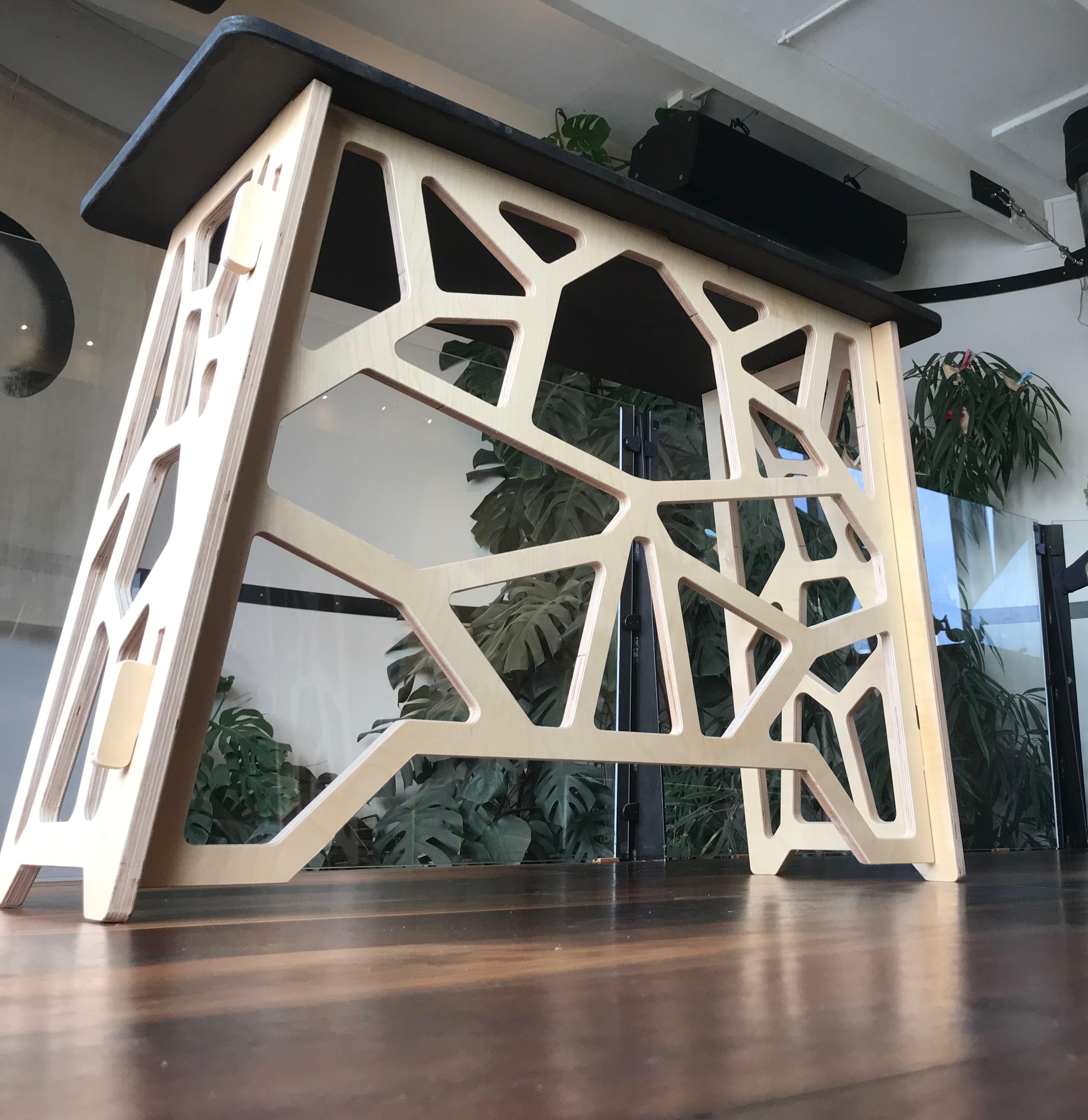 Voronoy deskFlat-pack desk inspired by Voronoy's mathematics. Materials: high grade plywood, black mdf.